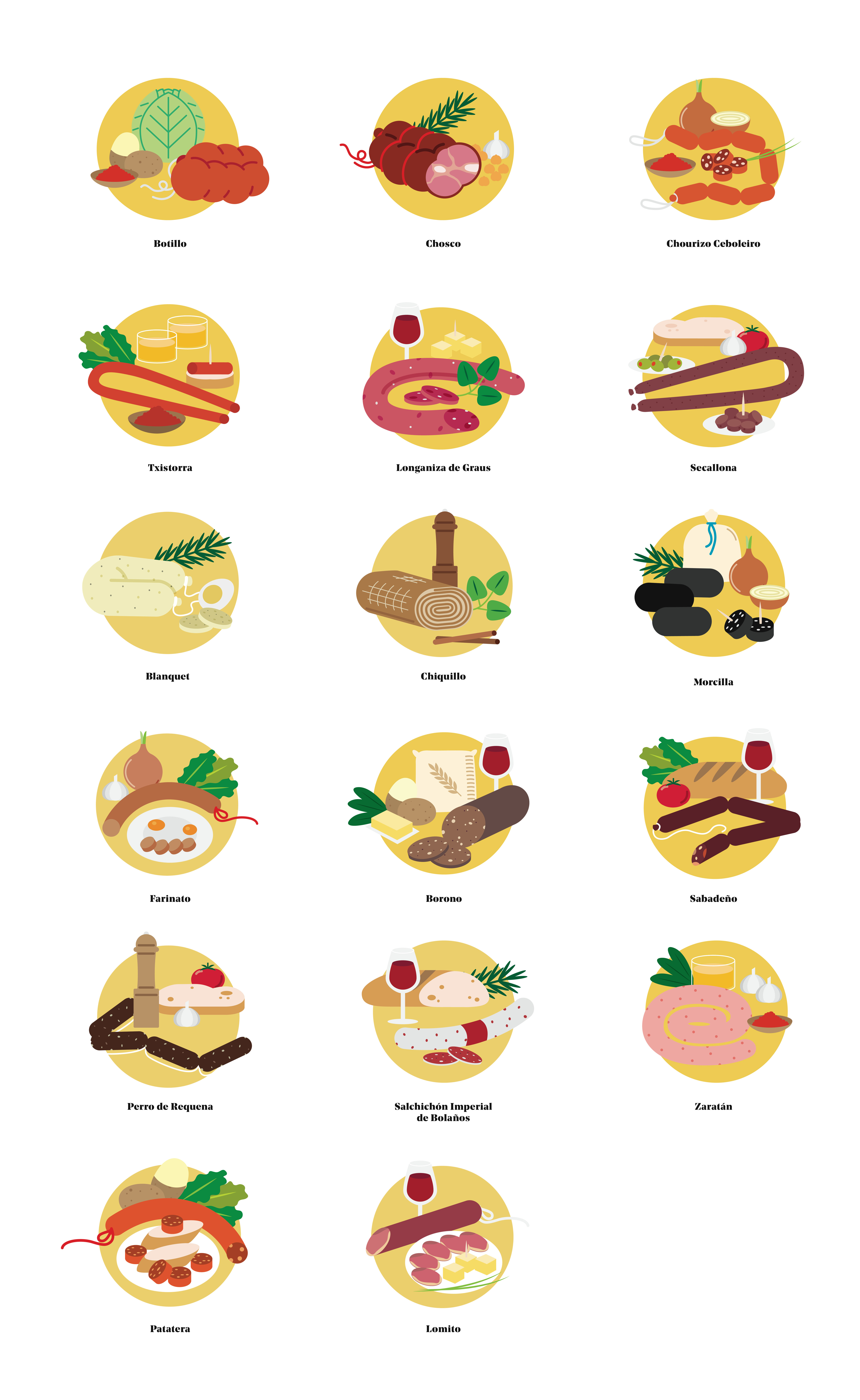 Illustrated map of the main sausage types in the regions of Spain.